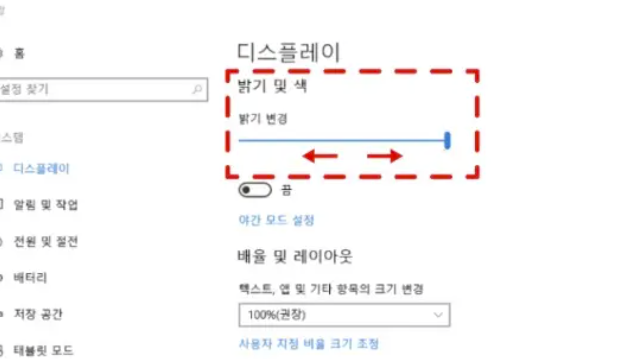 윈도우 자동 밝기 조절 기능 점검