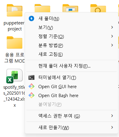 - 안에서 오른쪽 클릭 → 새로 만들기 → 폴더